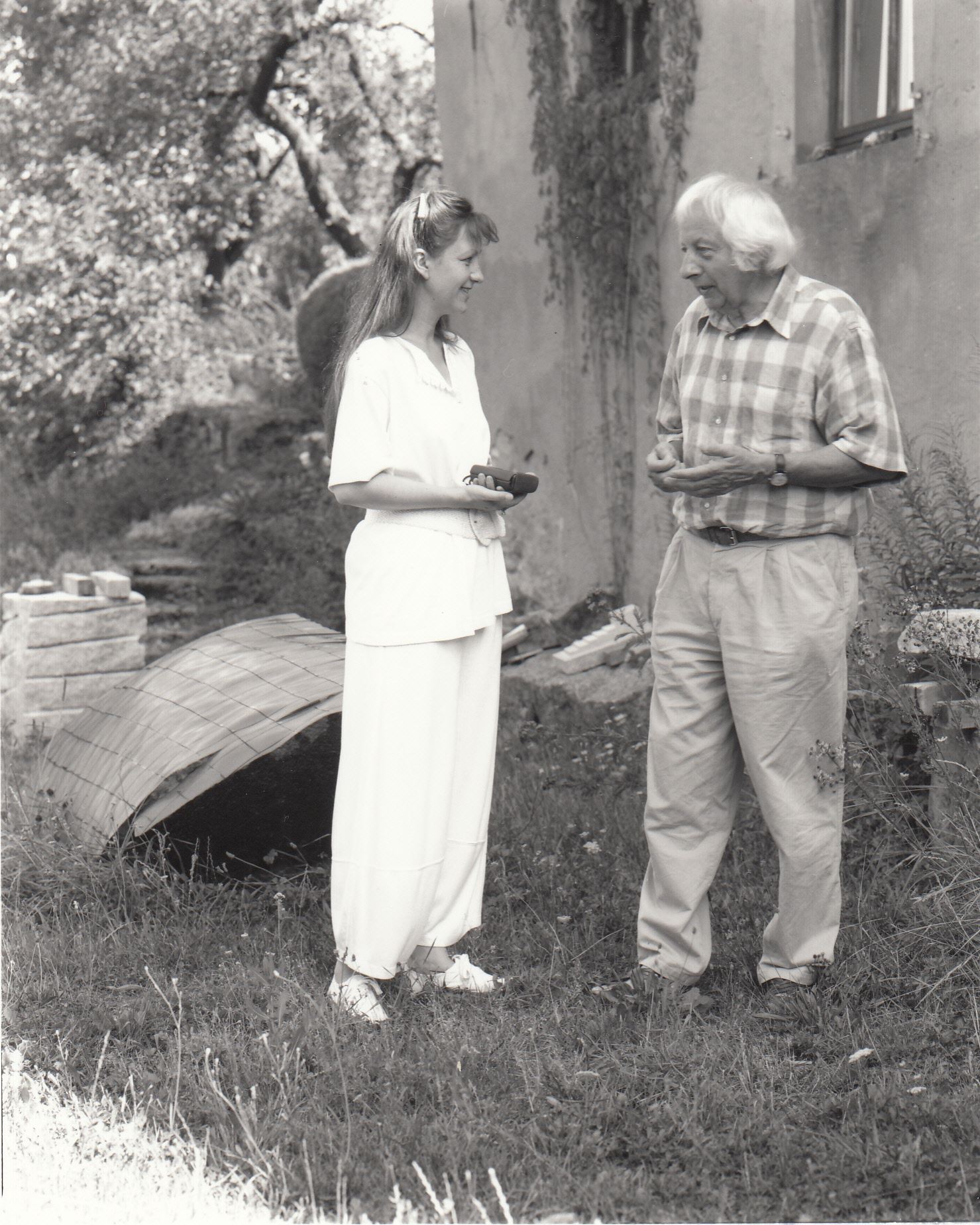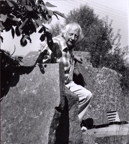 Sein Garten mit Steinen – unvergleichlich. Da standen und stehen sie, die Pfeiler seines Lebens, in Stein gehauene Spuren seiner Gedanken. Im Hintergrund – in Gesellschaft von Obstbäumen, Buchsbaum und Hortensien ein alter Holz-Schuppen, der in jedem Moment zusammenzufallen drohte. Schätze, frühe Arbeiten aus Holz und Metall waren darin aufbewahrt. Die Familie hat den Schuppen nun abgerissen. Verschwunden ist er, wie die irdische Existenz des Bildhauers.
