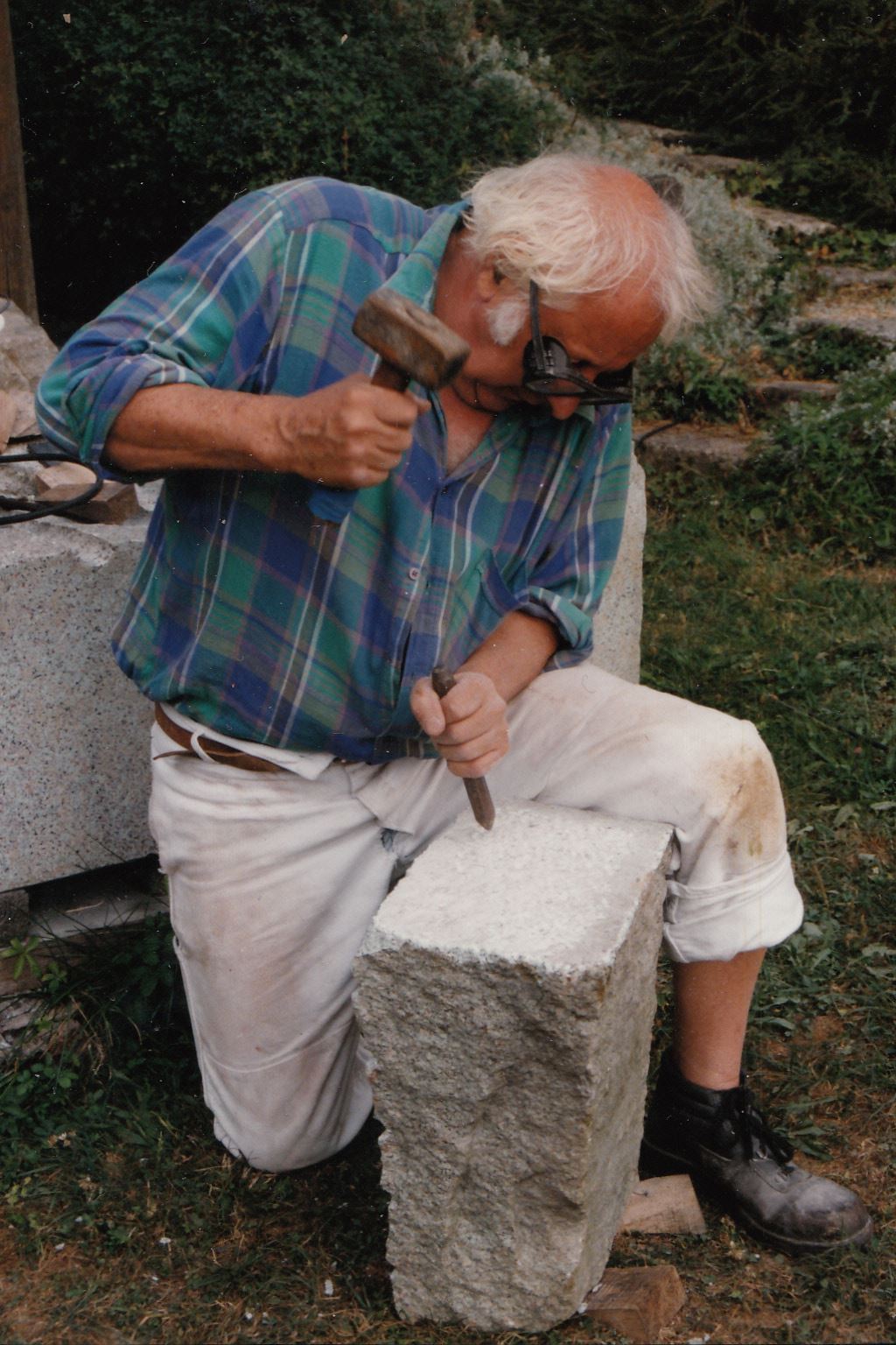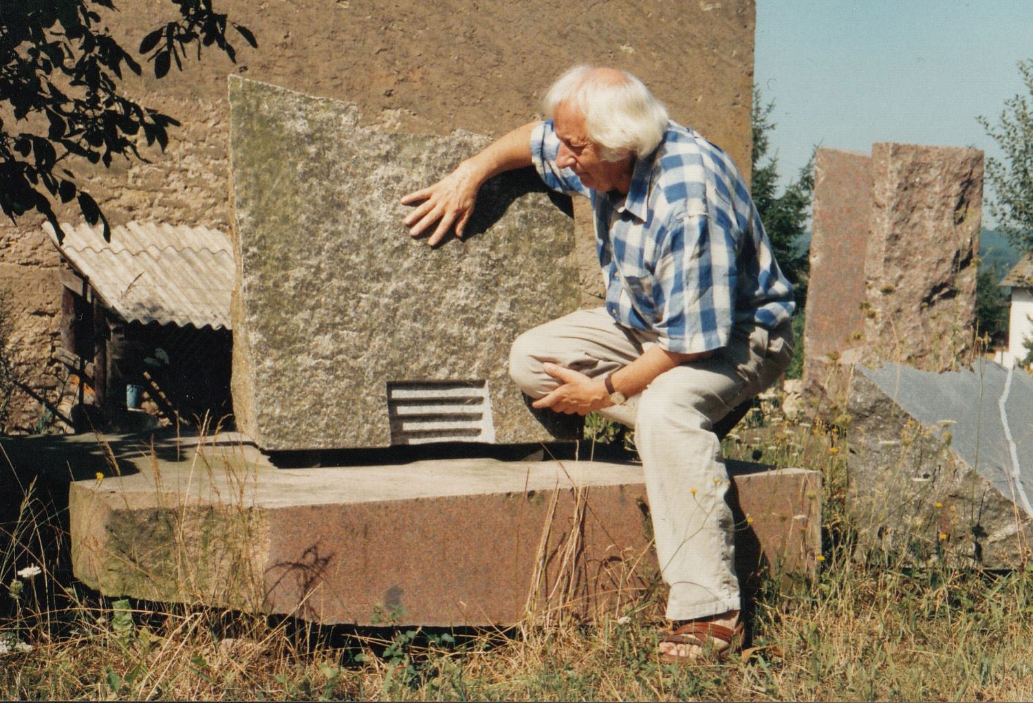 Niemand wird je die Wucht vergessen, mit der er über seine Kunst, den Stein als Wesenheit sprach. Er hat die Menschen begeistert, sie glücklich gemacht, die, denen das 'Künstlerisch-Geistige' seiner Steine zugänglich war. Gern hat er uns teilhaben lassen auf seinen Wegen, dem Weg eines Steins vom Steinbruch (in dem er sich zuhause fühlte) zur vollendeten Skulptur. Das Aufstellen eines nicht selten gewichtigen Steins, mit Kran, wurde zum Fest.