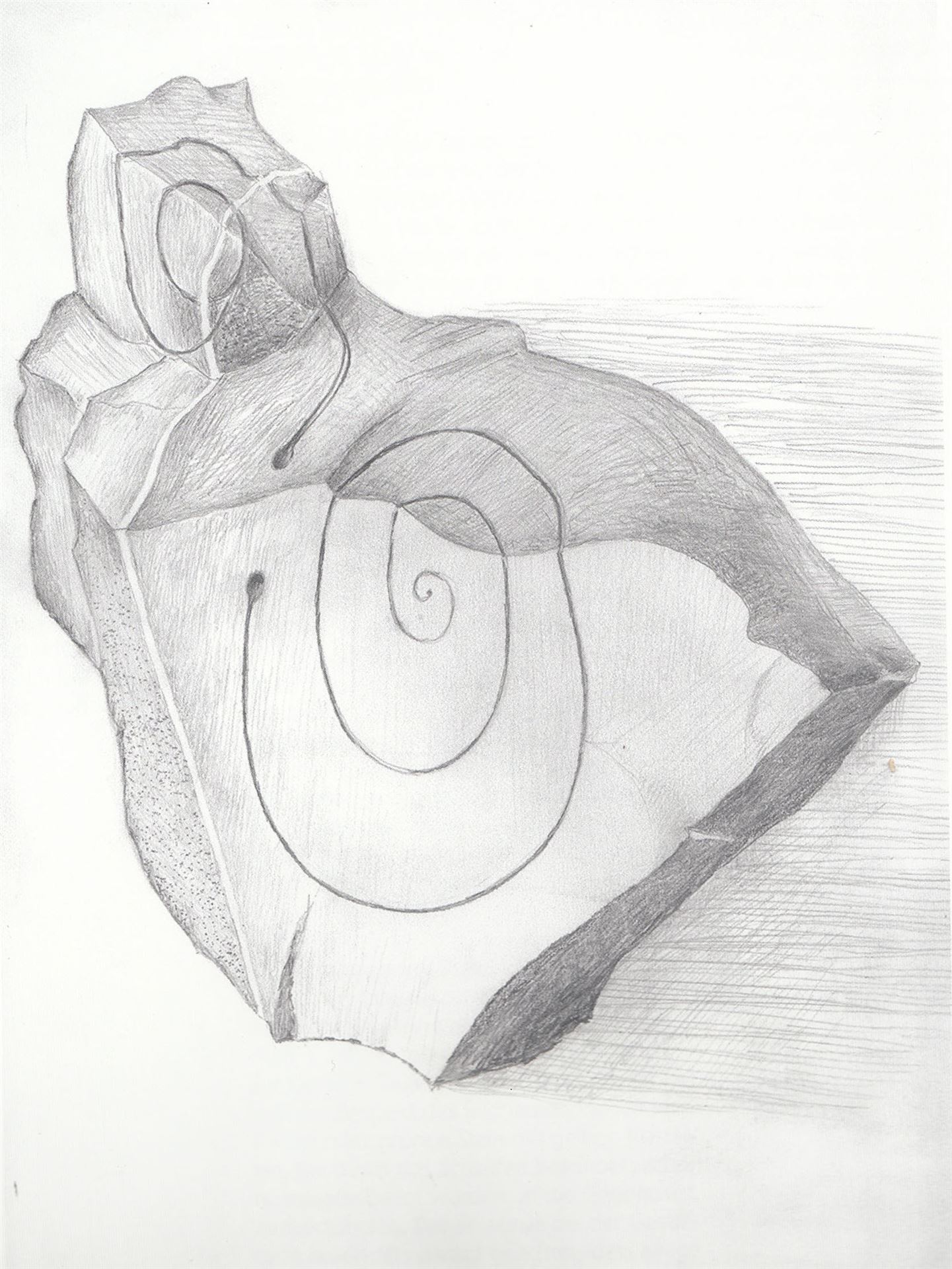 Es erstaunt nicht, dass die Spirale Thema seines Spätwerks ist. Sie finden wir auch in einem Stein, den er "Schicksalsstein" nennt (siehe Zeichnung). Paul Schneider arbeitete daran in der Zeit, in der sein Sohn verstarb. Ein Zeichen des Bandes zwischen Vater und Sohn...
