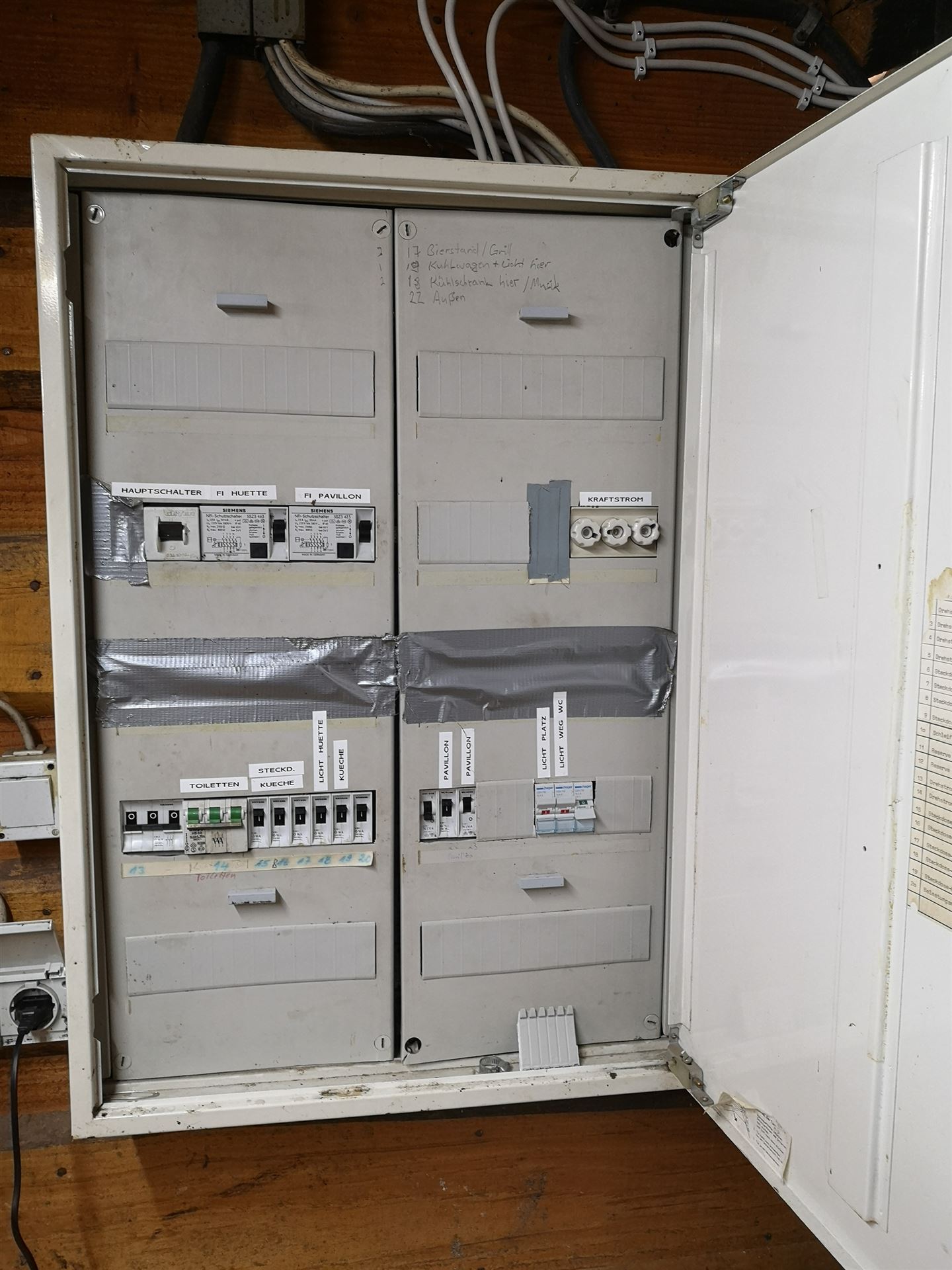 Es wurde ein LED-Strahler angebracht, der den Platz vor der Hütte anstrahlt, was die Aufräumarbeiten abends erleichtert. Der Weg zum Toilettencontainer wurde mit 3 LED Lampen ausgeleuchtet, die auf Masten montiert sind und in der Hütte wurden alle Lampen auf LED umgestellt.