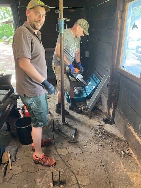 Nach Corona konnten wir endlich unsere Eigenleistung starten. Die 7 er Truppe des 1. Arbeitseinsatzes wurde beim heutigen 2. Einsatz gleich durch 3 Freunde der Jägerschaft Bietzen-Harlingen - Team Wutzis personell verstärkt. Hier gilt das Motto „wir nutzen ja auch die Hütte, dann können wir uns auch bei der Renovierung einbringen“. Tolle Einstellung - herzlichen Dank!!!