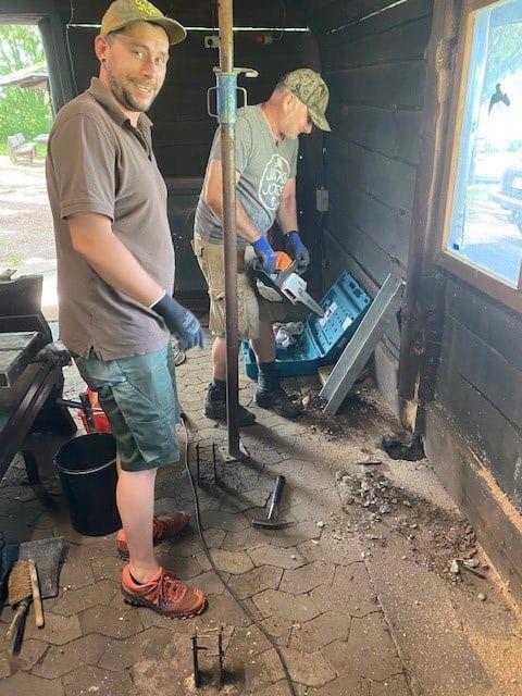 Bei unserem Projekt „Sanierung der Schutzhütte Bietzen“ geht es trotz der Hitze weiter. Zum 3. Arbeitseinsatz hat das Engagement der Jägerschaft Bietzen-Harlingen - Team Wutzis "Schule" gemacht. Zu den Akteuren haben sich drei Jugendliche der Katholischen Jugend Bietzerberg aktiv hinzugesellt. Nach dem Motto viele Hände schnelles Ende gilt auch hier mein herzlicher Dank.